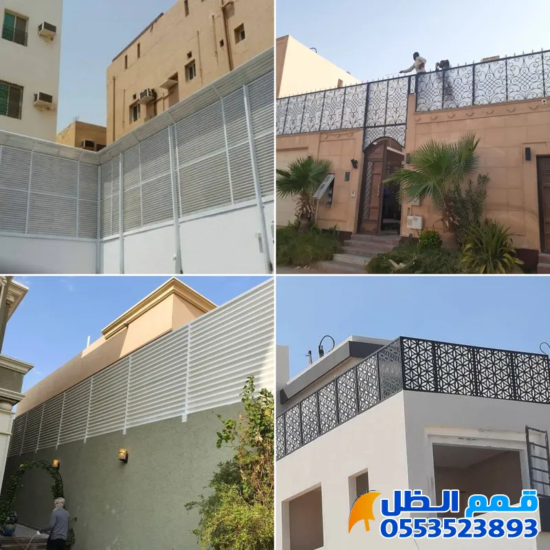 تعتبر الأقوى والأكثر أماناً. تتميز سواتر الحديد الشرائح (لوفر) بمظهرها المودرن الذي يسمح بمرور الهواء ومظلات شد انشائي👉وحجب الرؤية تماماً، بينما المجدول يعطي طابعاً كلاسيكياً متيناً.