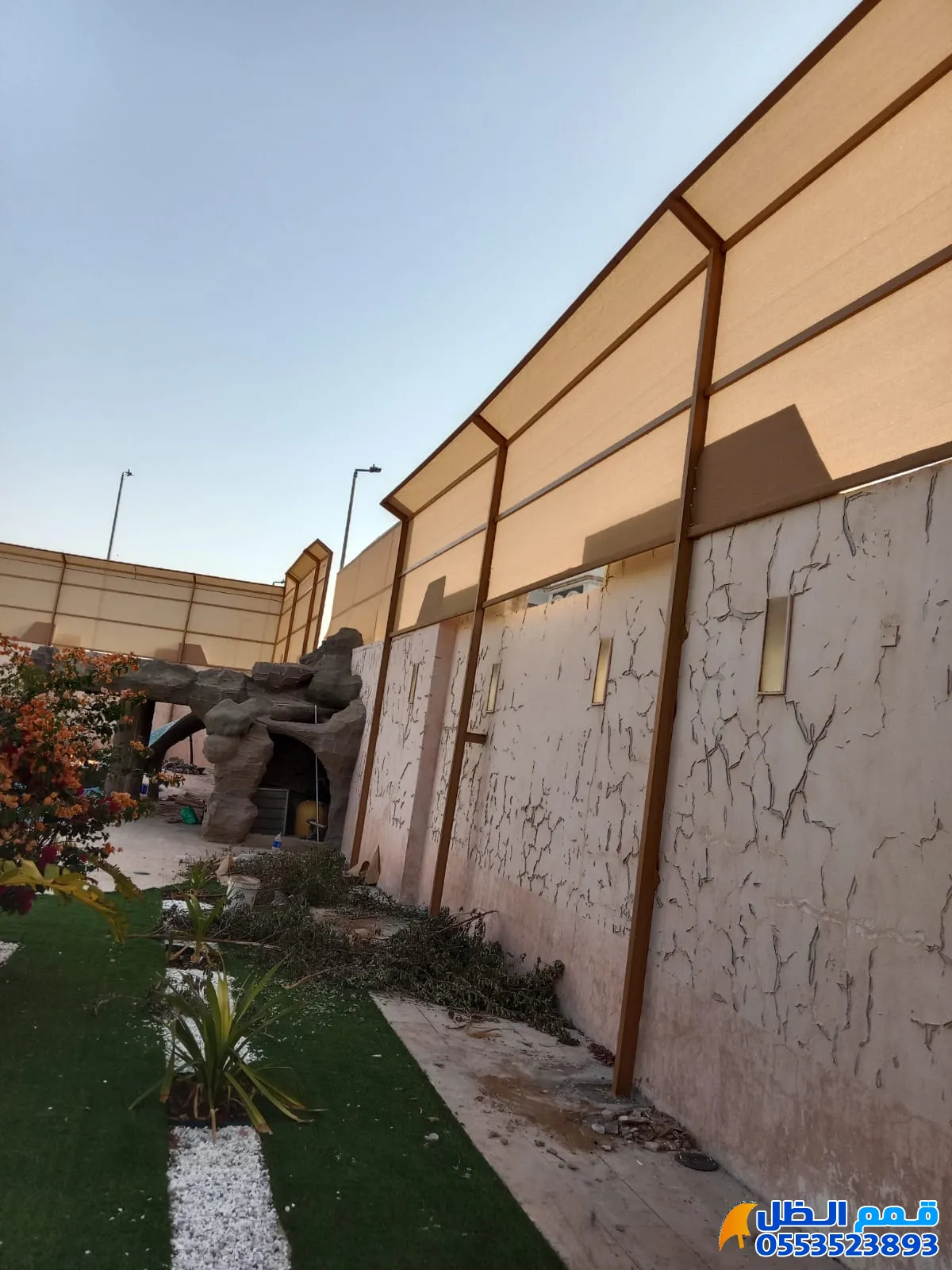 - التوافق مع الواجهة: يجب أن يتماشى لون وتصميم الساتر مع لون دهانات الفيلا وشكل المظلات الموجودة.