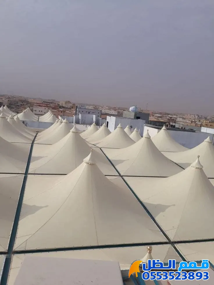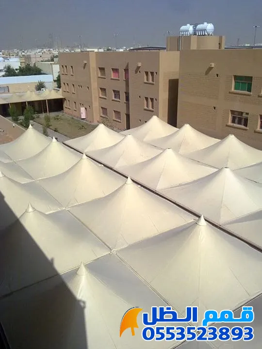 - مظلات PVDF: وهي النسخة الأكثر تطوراً، مقاومة للحرائق والاتساخ، وتستخدم غالباً في المشاريع الكبرى.