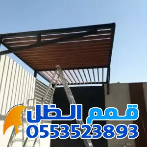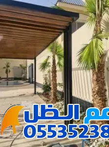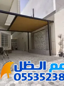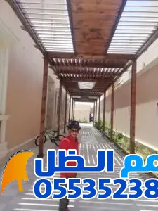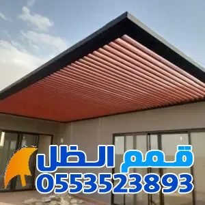 - المظلات الخشبية (الحديد بالشكل الخشبي): تمنحك مظهر الخشب الطبيعي مع متانة الحديد ومقاومته للتآكل.