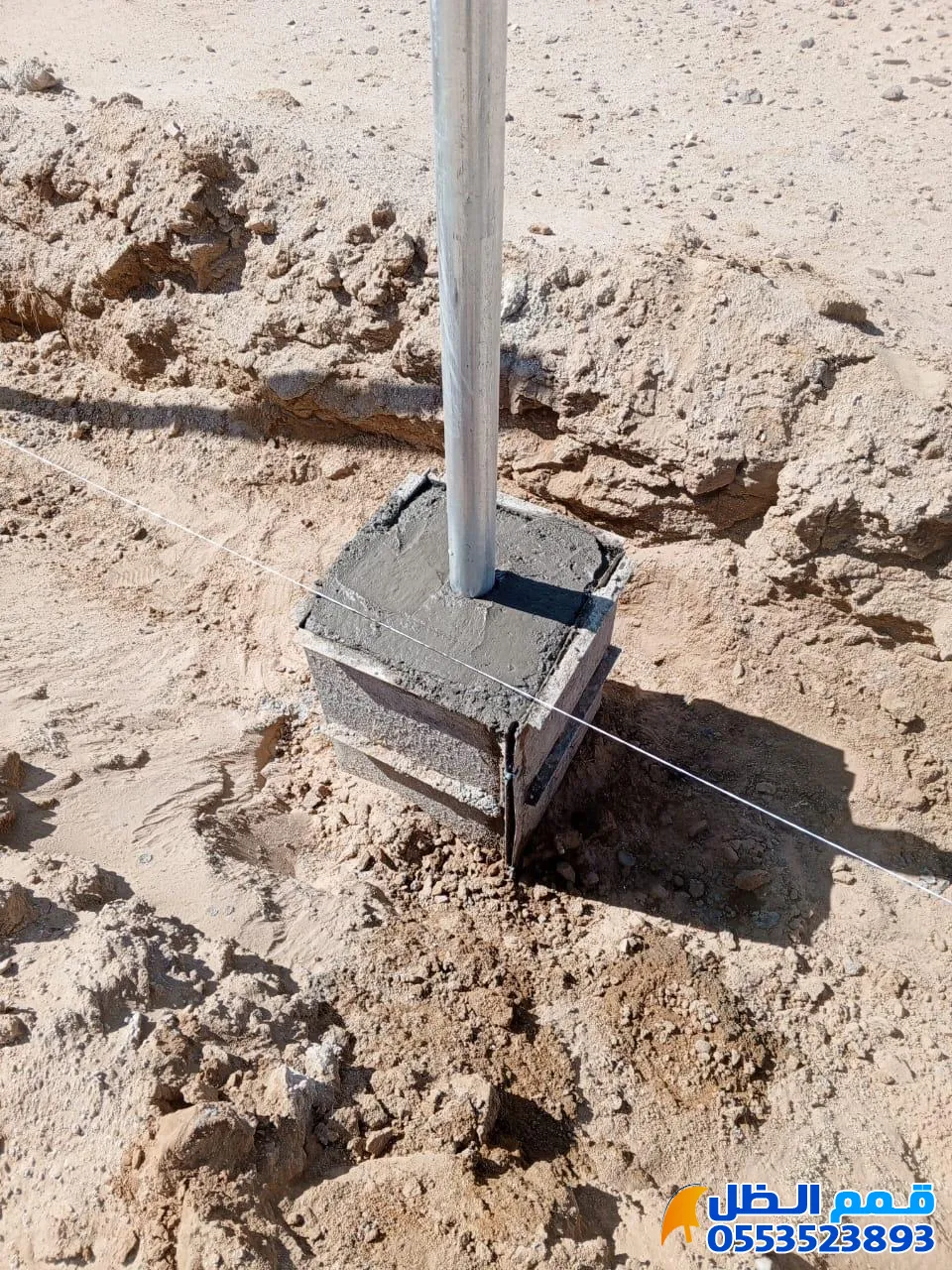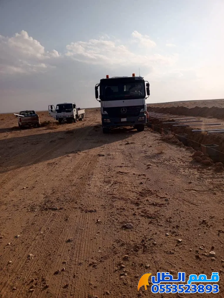 - تركيب الأعمدة (المواسير): تثبيت المواسير الحديدية (المجلفنة) عمودياً وصب الخرسانة حولها.
