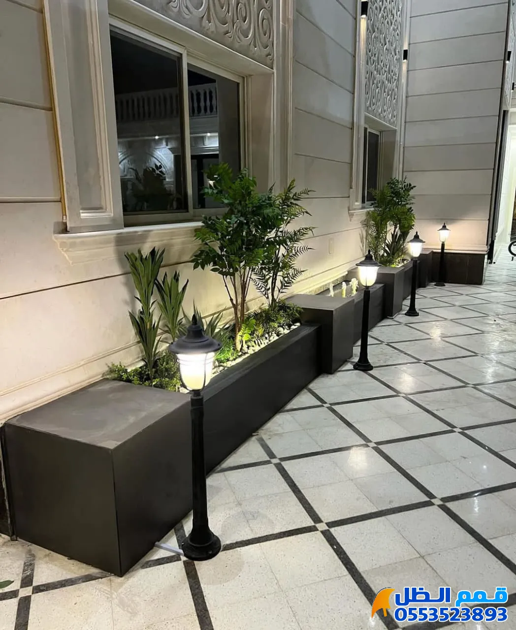 - المواد المستخدمة: يفضل استخدام الفايبر جلاس لسهولة تشكيله وخفة وزنه، أو الحجر الطبيعي (مثل الحجر الرياضي) لضمان المتانة ومقاومة الظروف الجوية.
