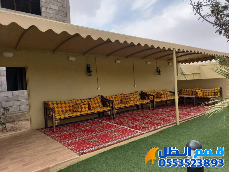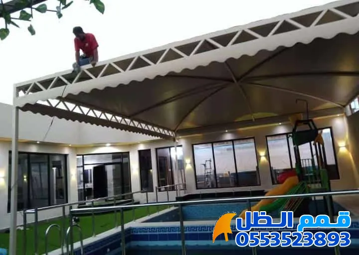 - التركيب النهائي: تثبيت الهيكل وتغطية المظلة بالقماش أو الخامة المختارة بدقة عالية.