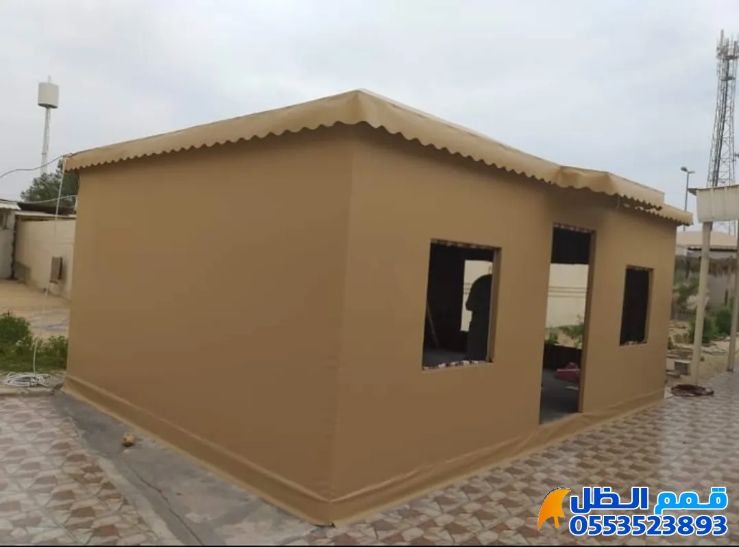 - الخيام الثابتة والمتنقلة: تُستخدم غالباً في الاستراحات والمزارع لسهولة فكها وتركيبها أو ثباتها الدائم حسب الحاجة.