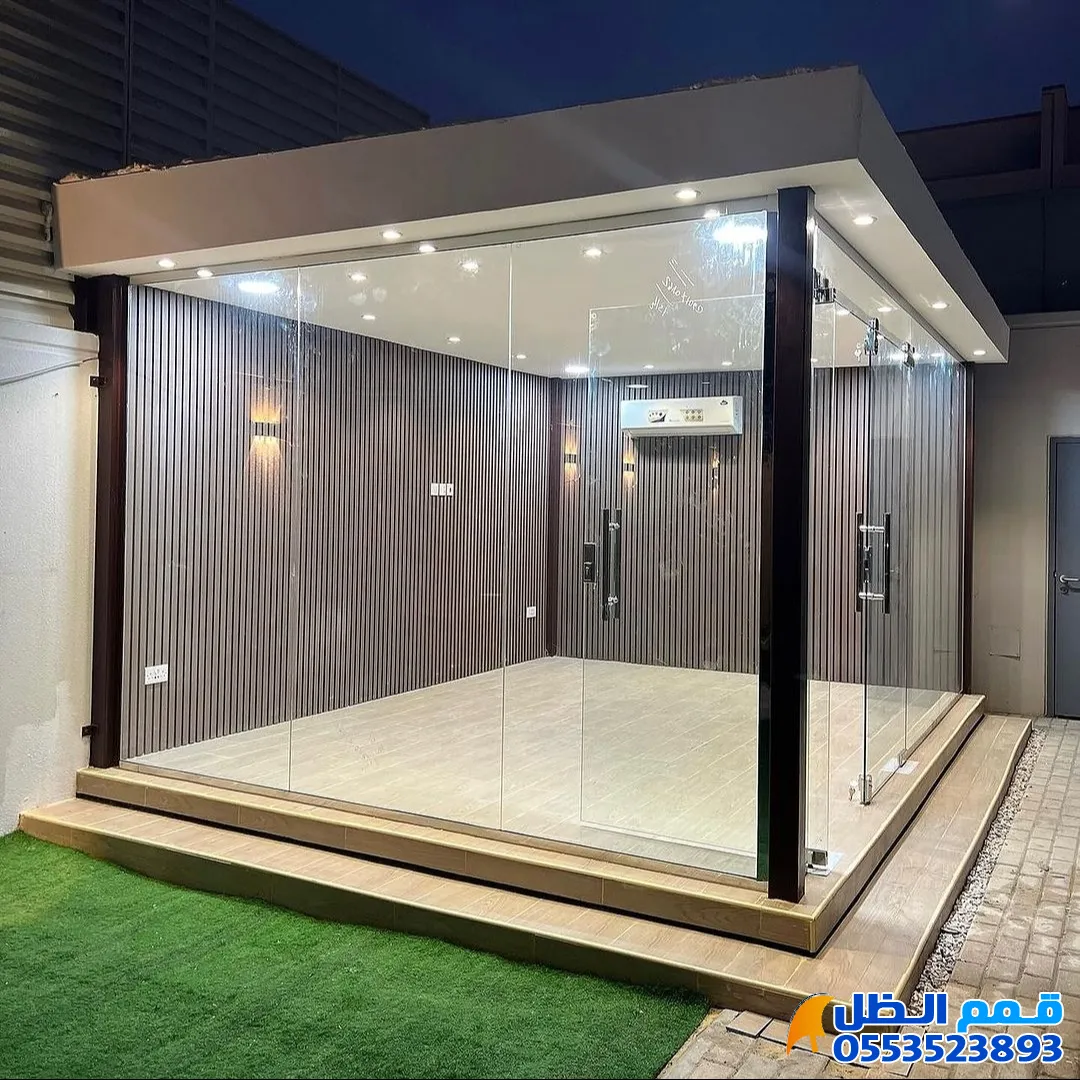 - المجالس الزجاجية: خيار عصري يتيح الاستمتاع بإطلالة الحديقة مع توفير عزل تام وتكييف مثالي.
