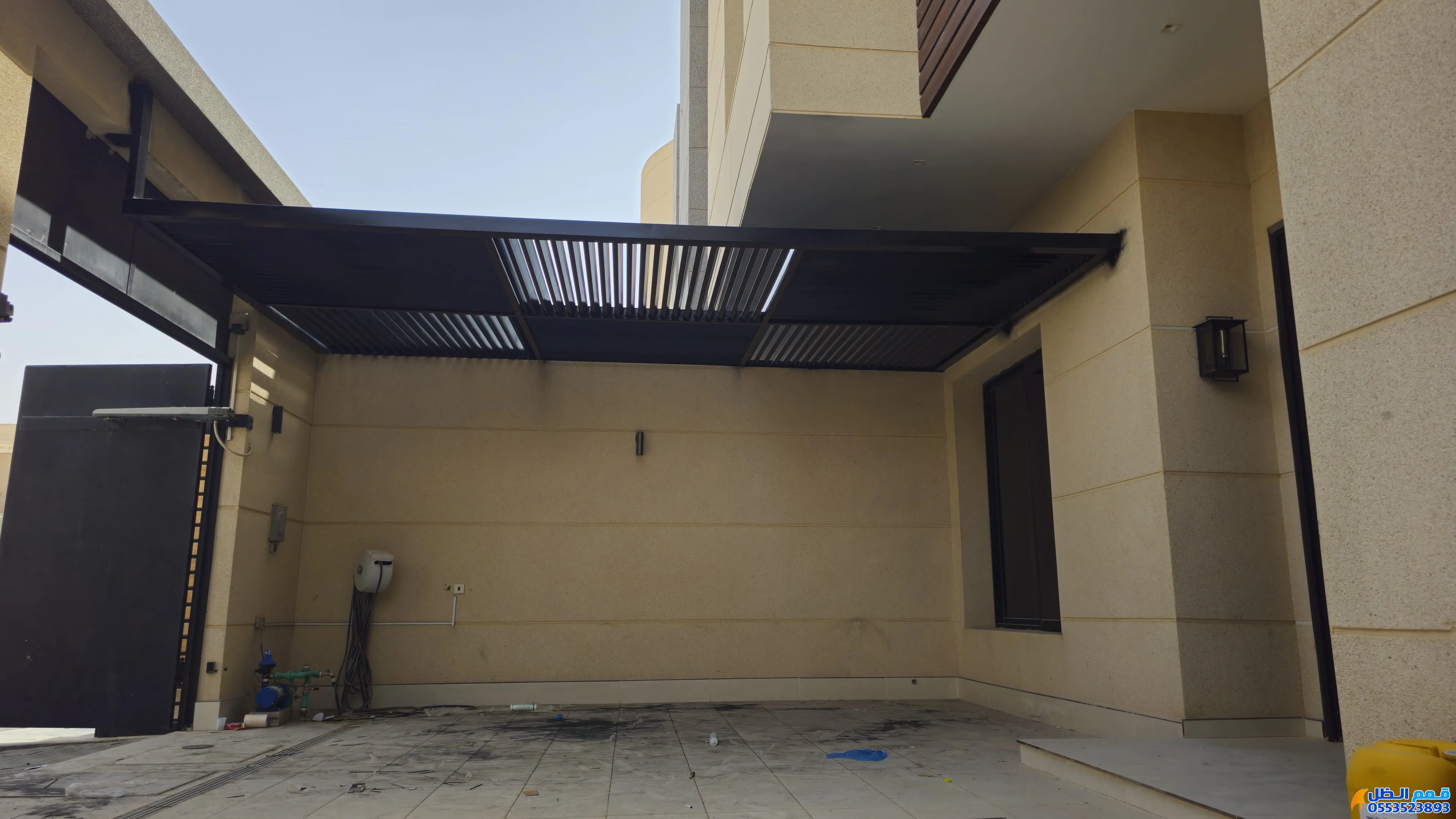 تتميز بتصميمها الهندسي القوي وتركيب مظلات وسواتر الذي يرتكز على أعمدة من جهة واحدة فقط.